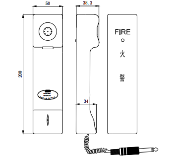 手提式電話分機(jī)為:200mm×50mm×38.3mm 固定式電話分機(jī)為:206mm×56mm×51.5mm |