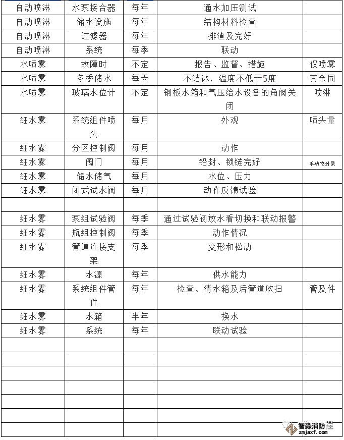 本頁關鍵詞:消防水滅火系統維護保養管理周期表格