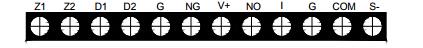 布線要求:信號總線Z1、Z2采用阻燃RVS型雙絞線,截面積≥1.0mm2;電源線D1、D2采用阻燃BV線,截面積≥1.5mm2;G、NG、V+、NO、COM、S-、I采用阻燃RV線,截面積≥1.0mm2。
